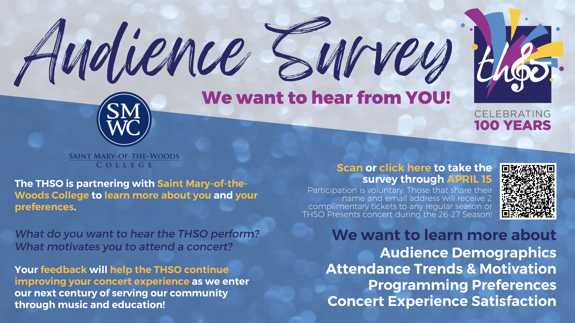 We share our deepest appreciation with Williams Randall Advertising for designing and gifting the THSO’s Centennial Logo in memory of Charlie Williams and Gail Hayes this season.