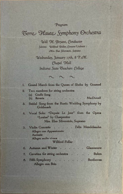 Program for the January 17, 1934, THSO concert, from the THSO archive at the Vigo County Public Library.
