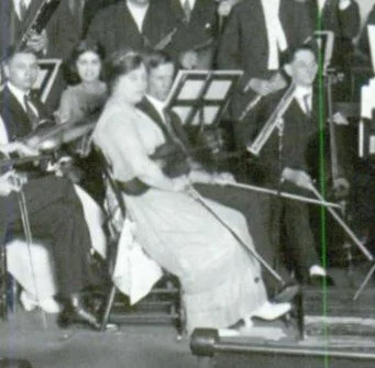 Marguerite (Kickler) Miller in 1919, on-stage with Harry Crawford’s Washington Avenue Presbyterian Church Symphony Orchestra; from Donna Gisolo Christenberry’s Terre Haute Farrington’s Grove.